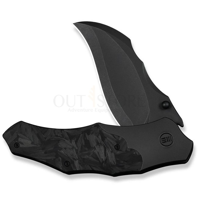 The WE Knife Orc Boss is a powerful folding knife designed by Grant Chambers of Chambers Designs. It features a curved hawkbill blade in black stonewashed CPM 20CV, engineered for aggressive slicing and standout visual impact.