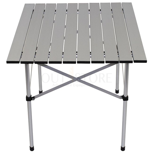 Table de camping pliable avec montage facile et design compact. Comprend des éléments de plateau connectés pour un montage rapide, inclut un sac de transport avec sangle de portage. Idéale pour les aventures en plein air. Légère et portable.