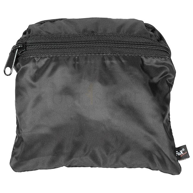 Sac à vêtements pliable FoxOutdoor en noir, design polyvalent et durable avec tissu déperlant et plusieurs compartiments pour une organisation facile. Idéal pour protéger et transporter des sacs, il comprend des poignées, des anneaux en D et des compartim