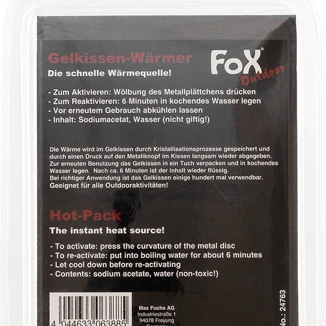 Le FoxOutdoor Reactivable Hot Pack est votre source de chaleur instantanée qui peut être facilement réactivée. Compact et léger, ce pack de chaleur est parfait pour les aventures en plein air et les situations d'urgence.