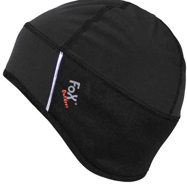 Chapeau Soft Shell FoxOutdoor - Noir - L/XL. Imperméable et coupe-vent, avec des bandes réfléchissantes, intérieur en éponge, 100 % polyester.