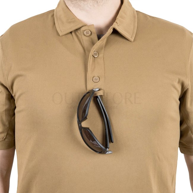 Restez au frais et à l'aise dans le polo UTL Helikon-Tex Topcool Lite - Coyote - S. Tissu léger et respirant avec col qui ne roule pas et technologie de séchage rapide. Équipé d'une boucle pour lunettes et d'une poche sur la manche supérieure gauche.