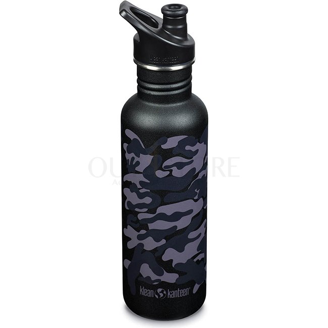 Bouteille simple paroi Klean Kanteen 800 ml - Camo. Avec bouchon Sport en silicone. Acier inoxydable 18/8, sans goût, hygiénique, sans BPA. Facile à nettoyer, compatible avec le lave-vaisselle. Dimensions : env. 22 x 7 cm, Diamètre d'ouverture : env. 4,4