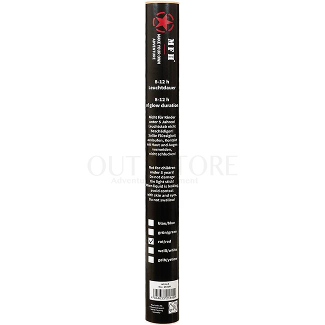 MFH Glow Stick 35cm en rouge, version plus grande de l'article n° : 26014, activation par flexion, applications polyvalentes comme lumière d'urgence ou de signalisation, marquage de chemin, brille sous l'eau, livré avec œillet de suspension, dragonne, boî
