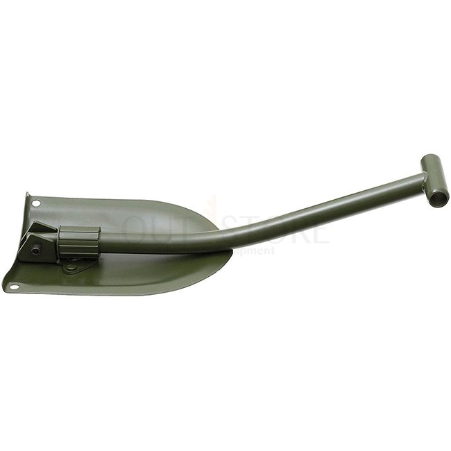 Pelle pliante avec verrou à vis, manche courbé, poignée en T, lame à pas. Taille : 26x18cm. Longueur totale : 70cm. Longueur repliée : 50cm. Poids : 1,3 kg.