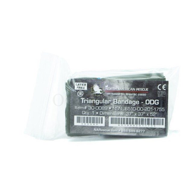 Le bandage triangulaire NAR - ODG est un outil médical polyvalent et durable qui peut être utilisé comme bandage, écharpe ou garrot. Sa couleur verte OD le rend adapté à un usage militaire ou en extérieur. Compact et léger, ce bandage est essentiel pour l