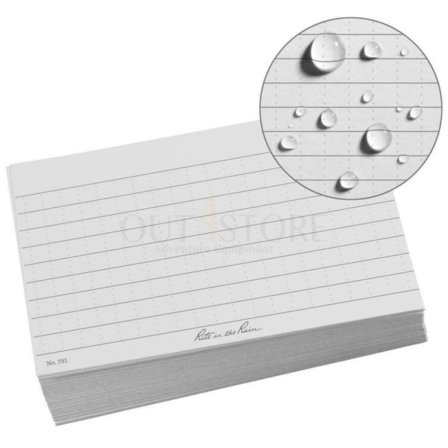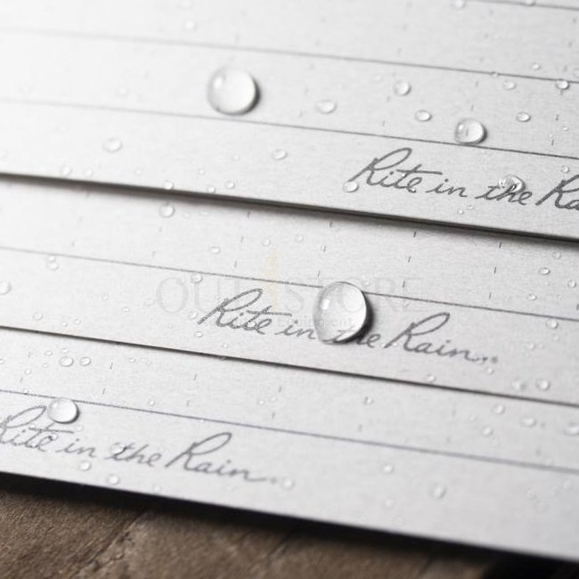 • Le papier cartonné Rite in the Rain résistant à l'eau protège vos notes contre les assauts de Dame Nature.