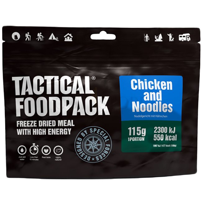 Nouilles au poulet, avec un agréable goût de lait de coco et différentes épices. 100% naturel, sans conservateurs ni additifs.