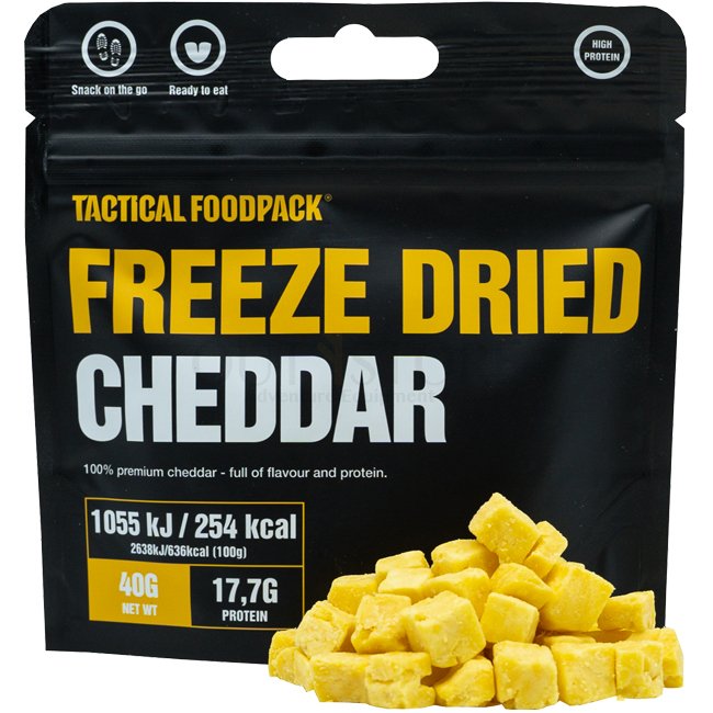 Les morceaux de fromage lyophilisés de Tactical Foodpack satisferont votre envie de salé et sont une excellente source de calcium et de protéines. C’est une excellente alternative aux snacks sucrés à emporter dans votre sac à dos – plein de saveur, croustillant et 100% fromage ! Mangez-les directement depuis le paquet sur le sentier ou près du feu de camp le soir.