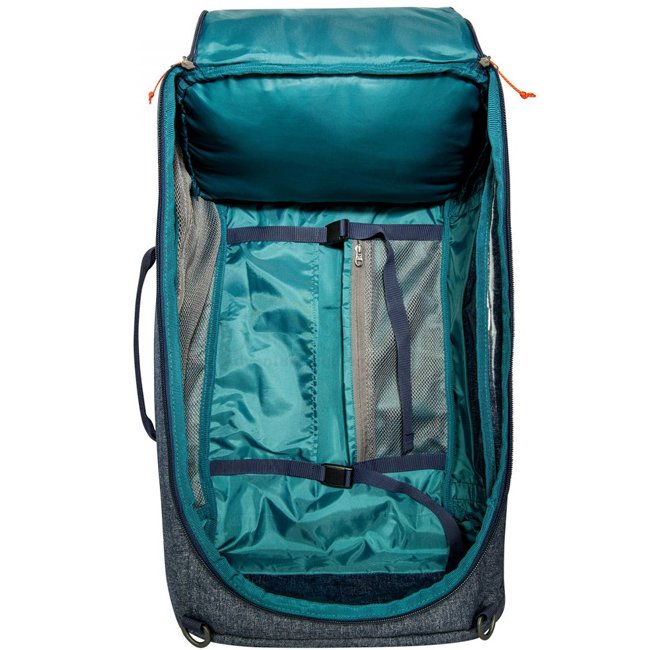 Grâce à la grande ouverture zippée dans le compartiment principal, le Duffle Bag 45 peut être facilement emballé, des sangles de compression fixent le bagage. Dans le compartiment principal, il y a également deux poches plates en filet avec fermeture à glissière - pour les petits ustensiles qui doivent être rapidement à portée de main. Le sac a également un compartiment à couvercle.