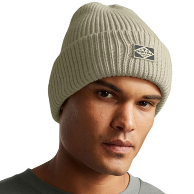 Bonnet minimaliste de la collection Project Rock, offrant chaleur au quotidien et style épuré dans le coloris Silt, avec l’emblématique écusson tissé Brahma Bull.