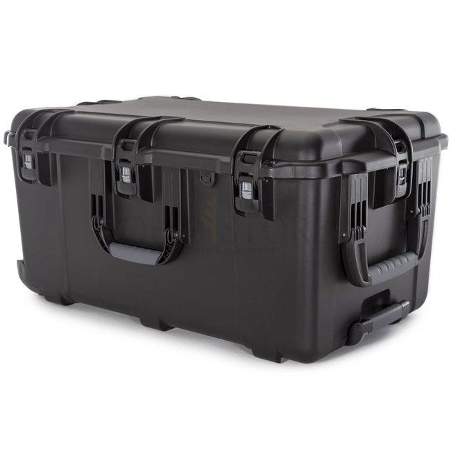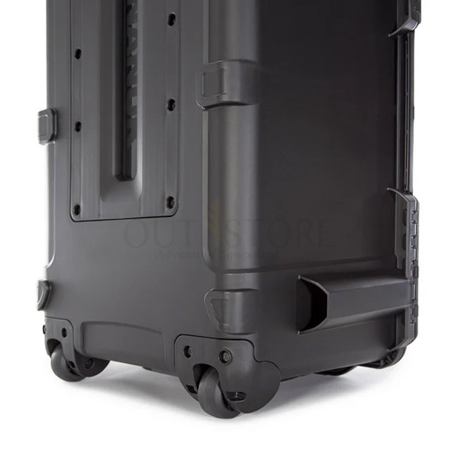 Sehr großes, robustes Rollen-Schutzgehäuse aus NK-7-Resin mit dem PowerClaw-Verriegelungssystem, automatischem Druckausgleichs-Ventil, Soft-Grip-Griff, drei ergonomischen Tragegriffen sowie Polyurethan-Rollen – ideal für den Transport großer oder schwerer Geräte. Diese Variante wird mit einer vorgestanzten Würfelschaum-Einlage (geschlossenzellig) im Boden geliefert, zur sicheren Polsterung und strukturierten Aufbewahrung Ihres Equipments.
