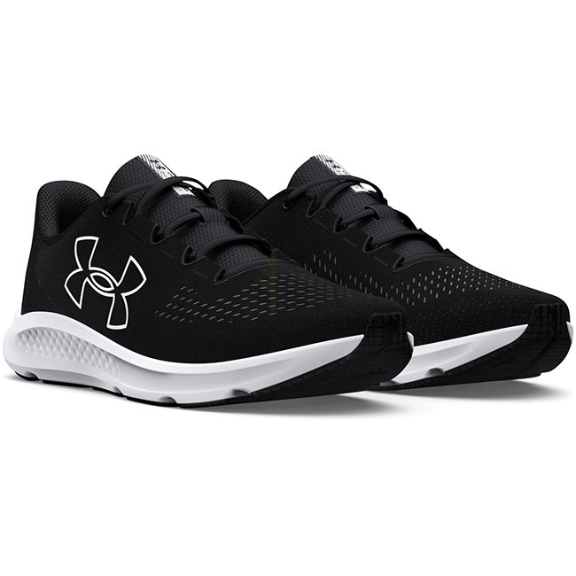 • Under Armour Mens Charged Pursuit 3 Big Logo Running Shoes - Black / White - 12