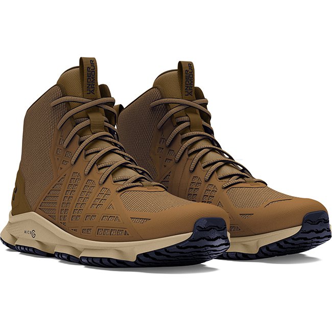 Under Armour Mens Micro G Strikefast Mid Tactical Shoes - Brown / City Khaki / Navy Blue - 11.5