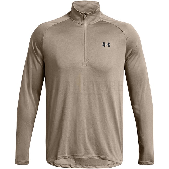 Under Armour Mens Tech 1/2 Zip Long Sleeve - Taupe Dusk / Black - S